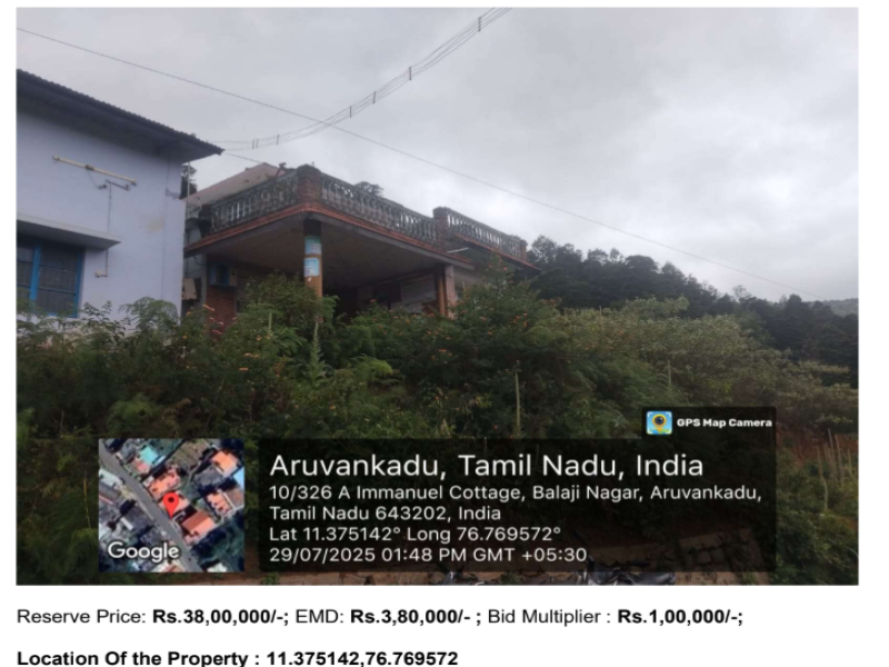 Land Measuring 0.03 acre and Residential Building measuring 1440 sq.ft in Old Survey No: 146/5A1, New survey No.110/5, Patta No.981, Door No.10/324 G-6, Assessment No.4713, at Jagathala Village/ panchayath, Kothagiri Taluk, Nilgiris (Balaji Nagar, Jagathala Road) standing in the name of Mr V Subramanian and Mrs Malathi Subramanian.
