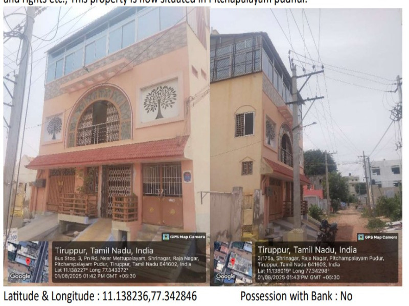In Tirupur RegistraƟon District, Thoƫpalayam Sub RegistraƟon District, Tirupur Taluk, now Tirupur North Taluk, Thoƫpalayam Village, PaƩa No.2061, G S No.392, since sub divided as G S No.392/2 in this lands measuring 2475 Sq. Ōs in this southern side lands measuring 1237 ½ Sq.Ōs of land along with regular pathway rights and all easements and rights etc., This property is now situated in Pitchapalayam pudhur