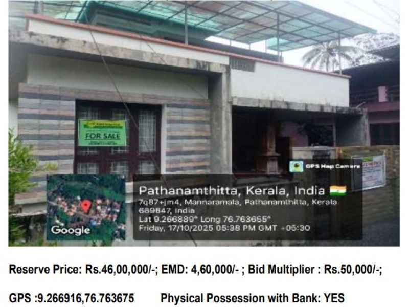 All that part and parcel of Residential land situated at Re Sy No. 162/3-16 (Old Sy No 248/1A/1) Blcok No.25,Patta No.9435 of Omallor Village, Kozhencherry Taluk, Pathanamthitta District admeasuring 2.02 Ares along with a two storied residential building having a plinth area of 212sq ft standing in the name of Mr. Jacob Mathew by Virtye of Sale Deed No 1994/12 Dated 16.07.2012 Pathanamthitta SRO.Bounded by North:Property of Aniankunju Mathew South:Property of Pathalil George East: Access Road West: Property of Ottaplavunikunnathil John.