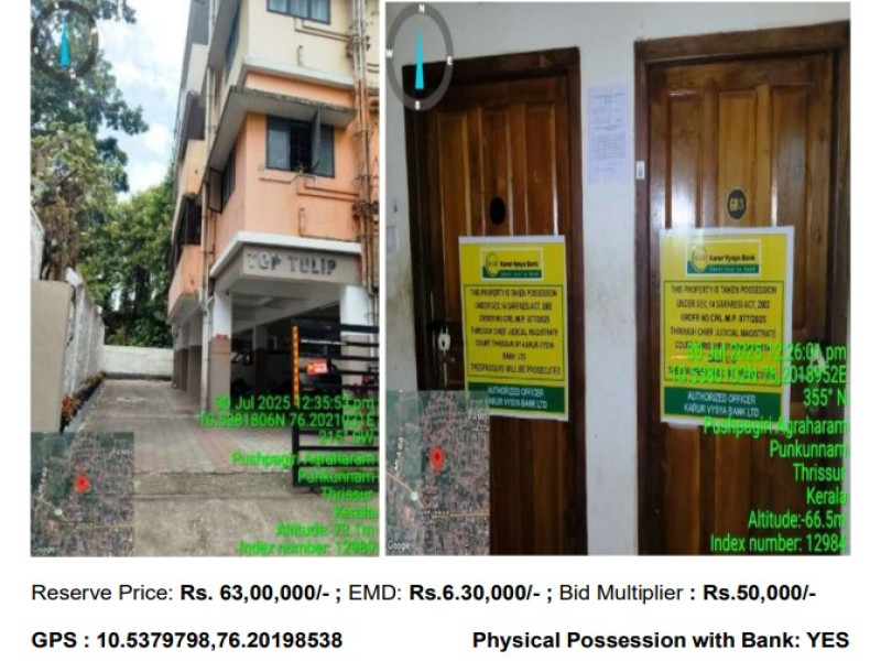 2/42 Undivided and inseparable shares of 13.36 Ares in Sy No 1709/1 Part & 17909/2 Part in Thrissur Village, Thrissur Taluk together with absolute right over two residential flats having a total plinth area of 1800 Sq. Ft (900 Sq Ft. For each Flat) Apartment Type B1& B3 on the ground floor of the apartment Complex Top Tulip near Sree Rama Temple, Agrahara Road, Punkunnam, Thrissur standing in the name of Mr. Karthikeyan Venugopalan Pandaraparambil by virtue of Sale Deeds 4033/2015 & 4034/2015 date 20.10.2015 of SRO. Boundaries North : Road & properties of Sivaraju & A N Sreekanth, South: Property of M/S Sitaram Mill, East : Property of Sitaram Mill and West: Property of Ragavendra Bhajana Madam.
