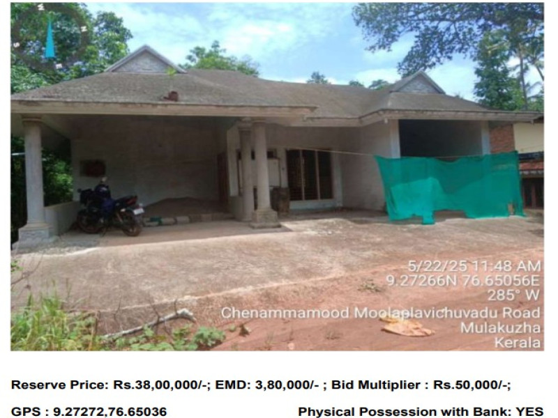 All that part and parcel of Residential Land admeasuring 11.50 Ares in Re Sy No 280/8 (Old Sy No 380/7A) in Block No.16 of Mulakuzha Village. Chengannur Taluk, Alappuzha together with a building having an area of 184.22 Sq Mt Standing in the name of Mr. Master K Suresh by virtue of Settlement Deed 674/15 dated 27.03.2015 & Release Deed 2109/2016 dated 24.12.2016 of Mannar SRO.Boundaries: North : Property of Satheesh, Saraswathy Bhavanam, South : Property of Mr. Babuji, East : Road, West : Property of Kurumakattu