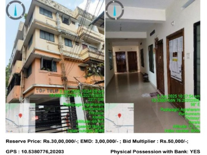 Land at Sy No. 1709/1 part and 1709/2 part to the extend of 1/42 undivided and inseparable share of 32.98 Cents and Flat Type B4, First Floor, Top Tulip of Thrissur Village, Agrahara Road, Punkunnam, Thrissur with boundaries as North: Land of Sivaraju & land of Sreekanth, South : Land of Sitaram Mills, East : Land of Sitaram Mills, West : Land of Raghavendran bhajana madam.